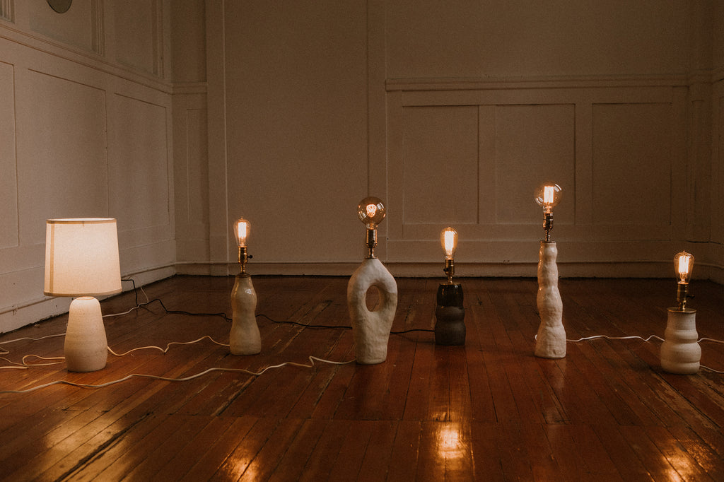 Nude handmade exposed lamp.