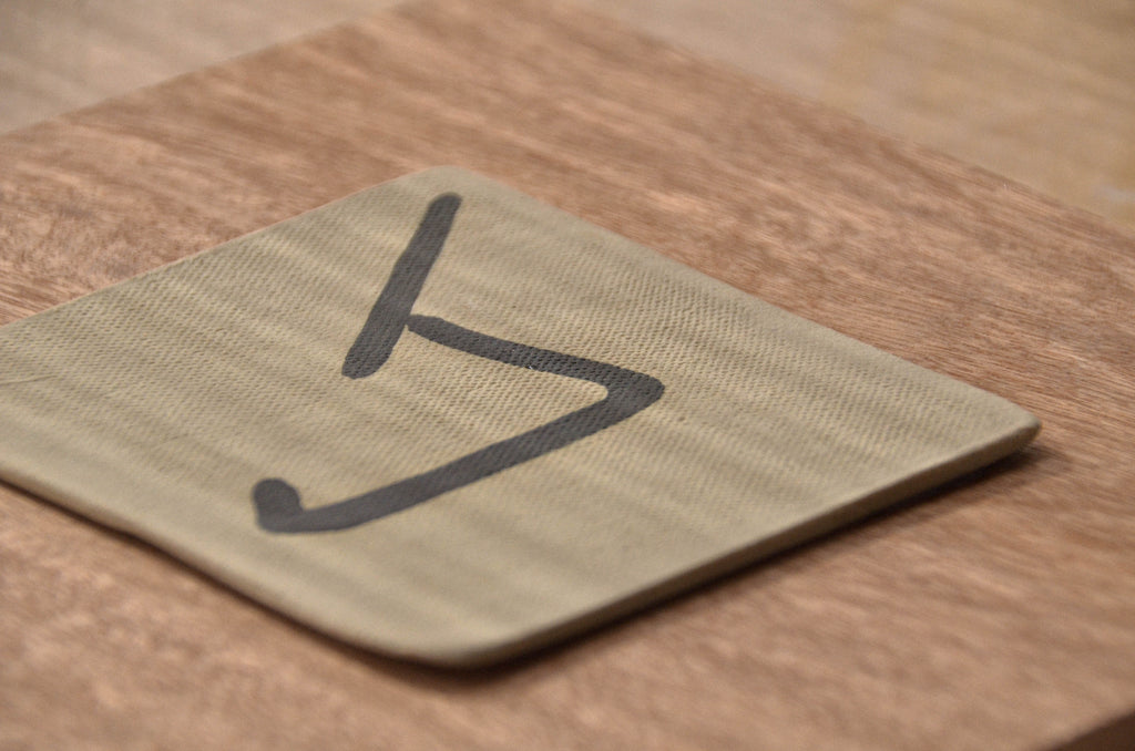 Minimal, lightweight, handmade nude and raw ceramic tiles with black underglaze brushstroke. Framed to float on red wood. Accurately aligned laser cut holes on the backs, ready to hang. Keep one, some, or all together. Each tile is marked with their according number out of an edition of 6 collectible tiles. In the spirit that we are all one, each collector is subtly connected through obtaining a little piece of the creation.