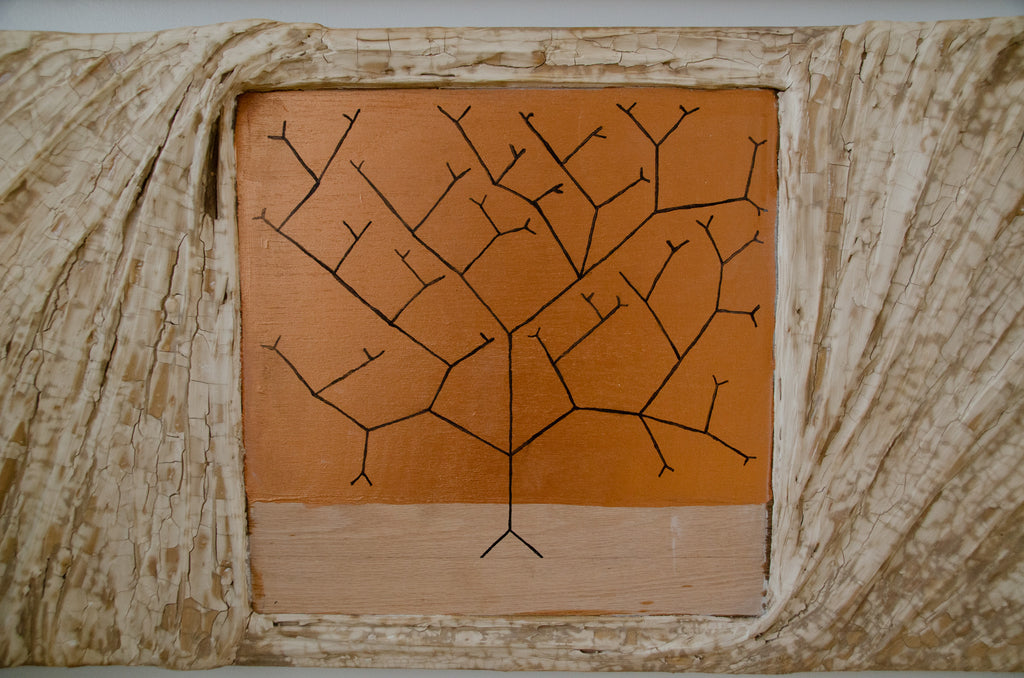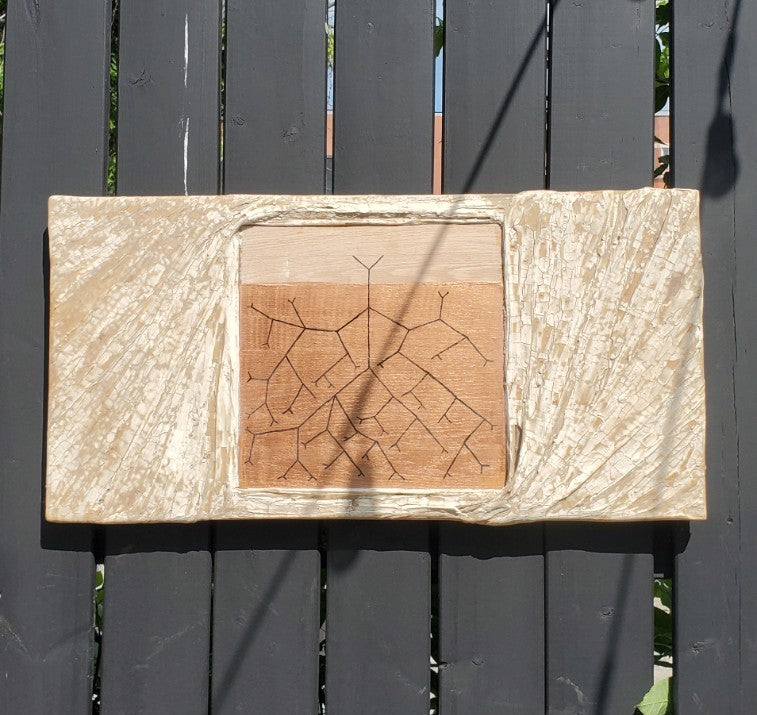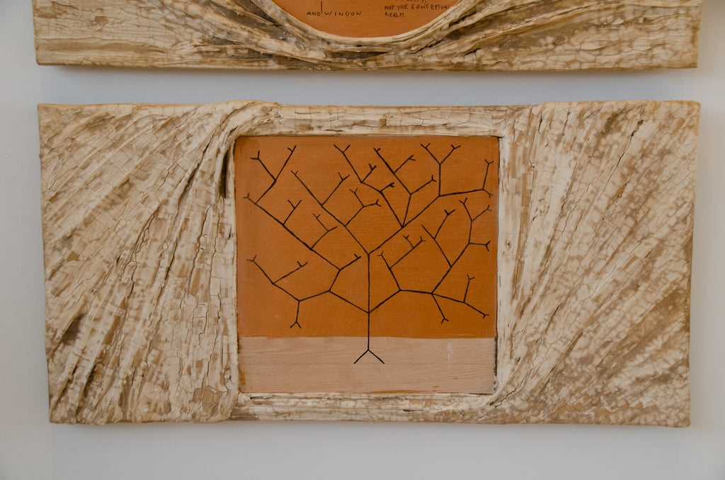 Material: Linen and raw clay plaster mix on panels, pen ink and copper paint