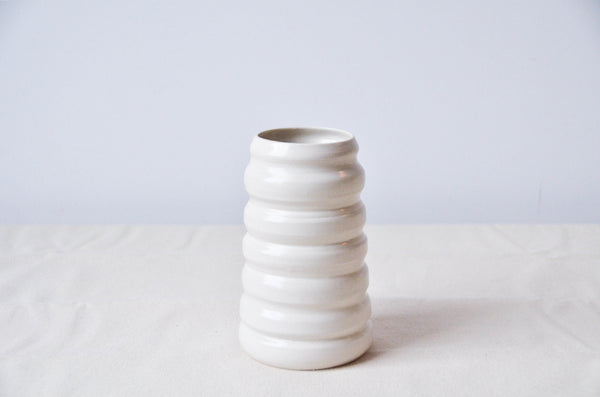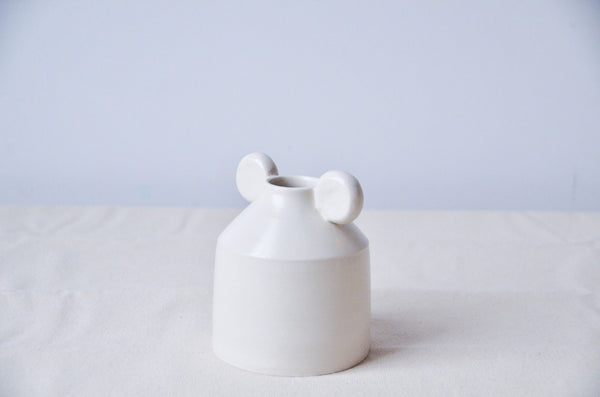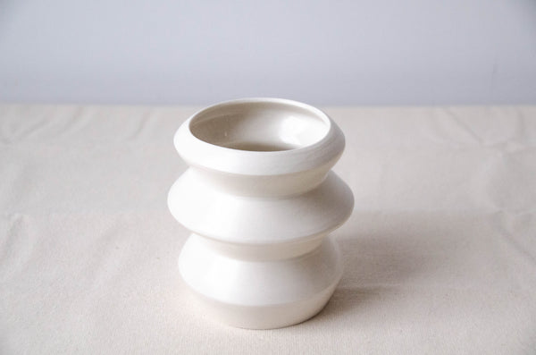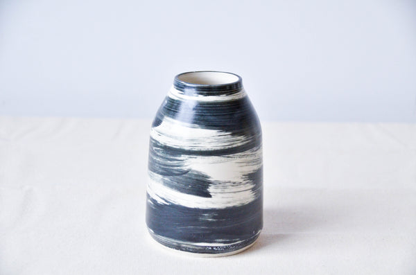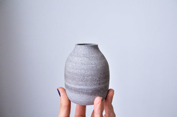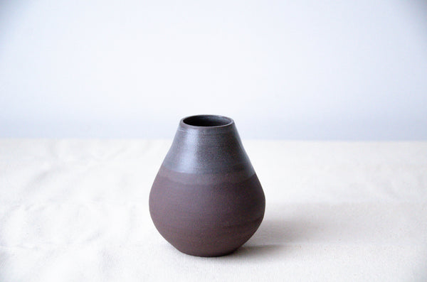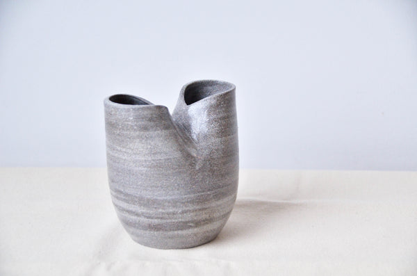 This series of white porcelain, grey stone, and espresso coloured vases are one off, unique shapes exploring the boundaries of shape, styles and techniques. The cohesive element through the collection remains minimal design aesthetic.