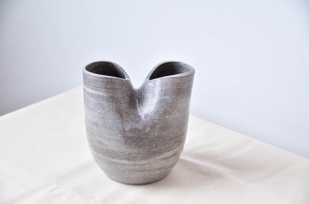 Resembling the anatomy of a heart, this double opening stone coloured vase is a one of a kind favourite.
